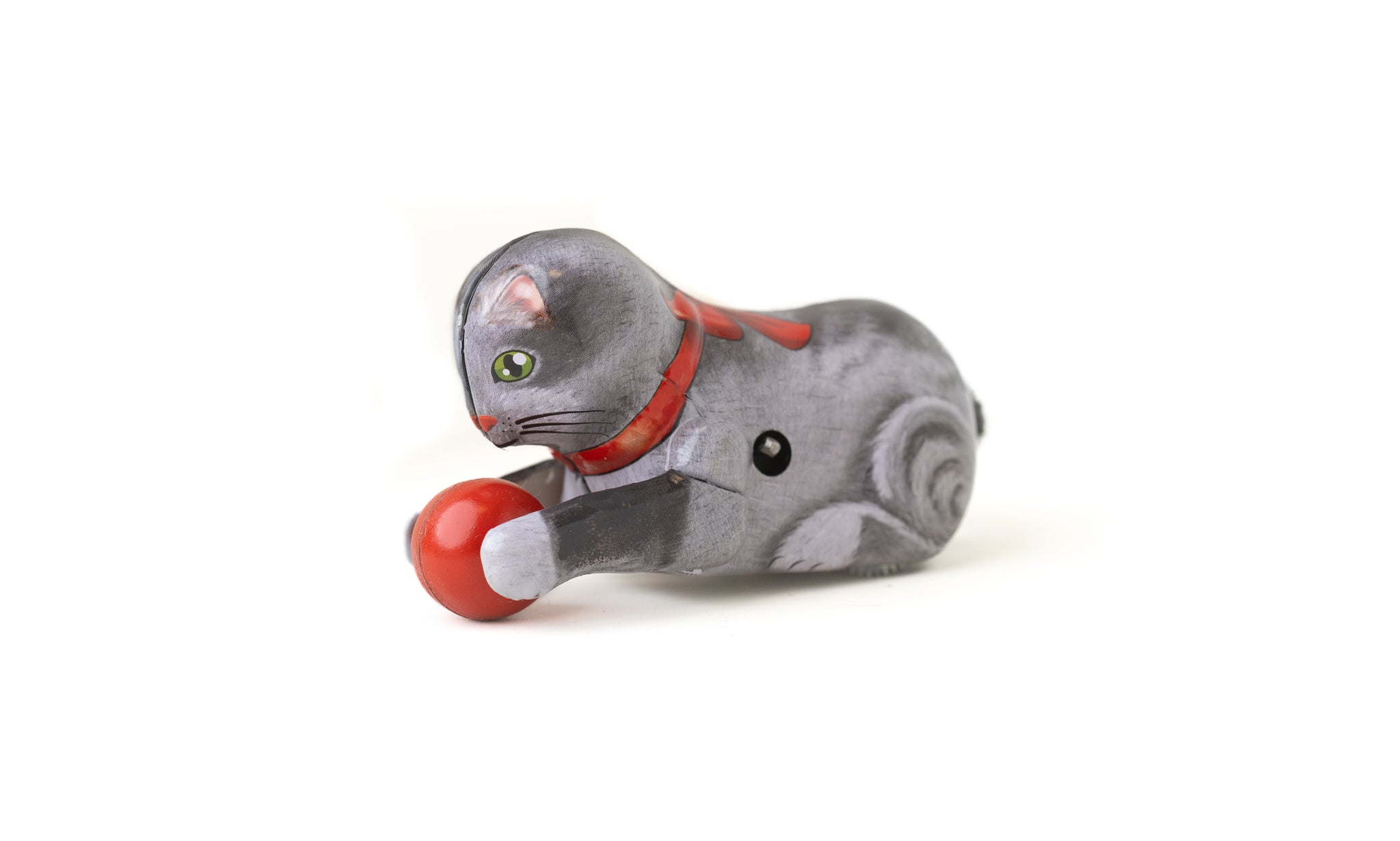 This playful rolling cat can't stop playing with her red ball. Wind up to see this adorable cat with attractive graphics as she has some fun.